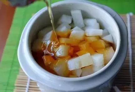梨润肺清热,生津止渴,与冰糖同用,增强润沛止咳作用,可治疗肺燥咳嗽、干咳无痰、唇干咽干等症,特别适合秋天食用。将雪梨去皮,切开顶部,用勺子挖掉内核,中间放入冰糖,放回顶盖,将雪梨将雪梨雪梨放入蒸锅内蒸30分钟左右,就能吃了。要坚持食用几次才可见效。