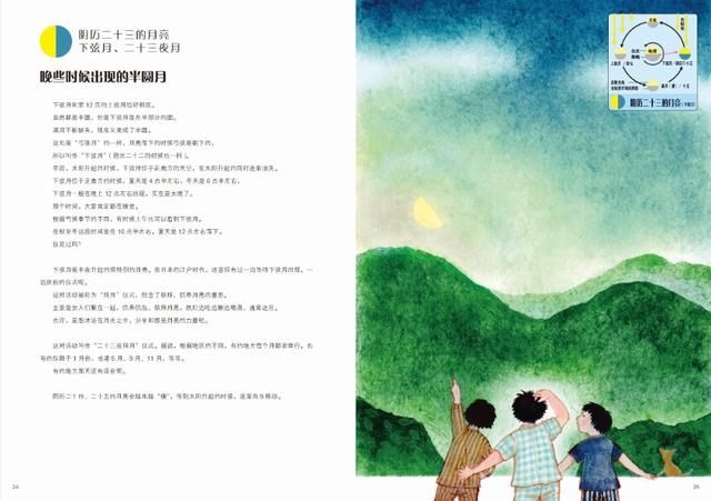 在图书随后的编辑出版过程中,小编又了解到这本书的创作契机原来就是源于我们每天都会用到的月历,日本作家大枝史郎发现月历其实就是按照月亮的变化演变而来的。他毕业于日本名校早稻田大学,曾经是一位专门从事月历出版的人员,由他制作的年历荣获过多个奖项。他创作《有趣的月亮观察绘本》的初衷是源于在1996年制作的一本《阴历》的年历。当时他一直在思考着如何将“月亮的盈亏”图像化,连续几天都在思考着,也画了很多草稿。在发表了《阴历》之后,作者常常会接到读者们的反馈,他们说:“现在终于可以与儿子或孙子依靠在一起,跟他们说:‘你看,这跟阴历的月亮是一模一样的’,‘在云之上还有这个月亮喔’”。大家反映通过这幅阴历,不但可以学到知识,还可以使家庭关系变得更为和睦,这也极大地鼓励了他。就在听到那样的话的时候,产生了什么时候出一本《有趣的月亮观察绘本》的愿望。在创作期间多亏了读者们的鼓励,使得这本书最终得以出版发行。大枝史郎也希望家长能够在阅读这本书的同时,跟孩子们在一起其乐融融的赏月。俗话说:术业有专攻,虽然大枝史郎只出过这一本书,但他把多年从事月历工作累积的经验,将月相的变化这一复杂的天文现象,用浅显易懂的方法描绘出来,这就是这本《有趣的月亮观察绘本》的由来。