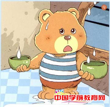 巴巴熊有个缺点:对什么都不在乎。瞧,“滴答,滴答……”巴巴熊的屋顶,有个地方漏雨了。巴巴熊拿出了个脸盆,接住了雨水。