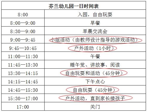 芬兰幼儿园一日生活时间表: