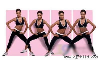 两脚分开站立,比肩稍宽,脚尖朝外,尾骨处下沉,臀部收紧。双臂抬起,向前伸展开。往下蹲,成马步,并保持双臂与肩同高。这个动作可以帮助你保持平衡。在保持身体舒适的情况下,尽量放低身体,但不要使膝盖弯曲超过脚尖。保持这个姿势2秒钟,然后恢复到预备动作。重复这个蹲下站起的动作10次。第11次蹲下时,坚持20秒。